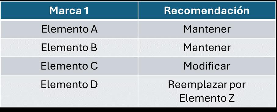 Si el proceso de rebranding responde adecuadamente a los hallazgos de la auditoría de marca, debería ser posible evaluar la continuidad percibida por el consumidor entre la Marca 1 y la Marca 2.